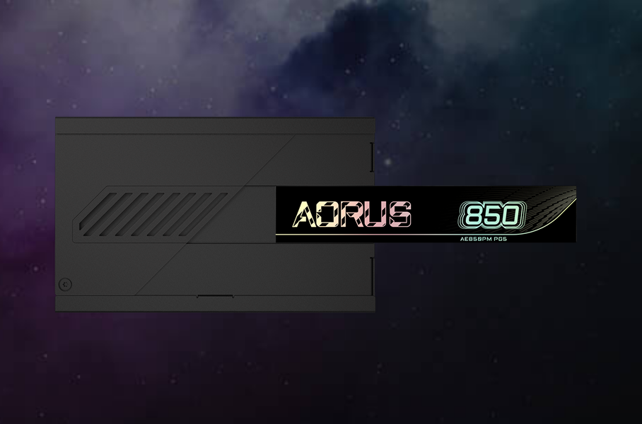 AORUS magnetic plate design The unique AORUS magnetic plate can be attached to different sides of the power supply based on the user’s preference, presenting the best visual effect from any angle. Additionally, while the plate being moved on the case, its neon color printing with metallic sheen creates solid and hollow special effects for the AORUS logo. | ![]() |