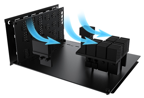 ![]() | Enhanced thermal solution Compared with the standard thermal solution, we have enlarged the heatsink and optimized the airflow. The heat dissipation performance is increased, thus prolonging the service life of the components. |