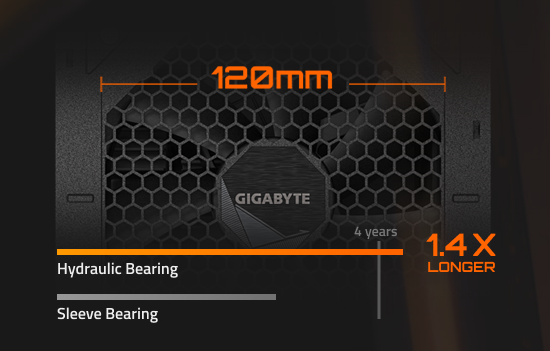 120mm smart Hydraulic Bearing(HYB) fan with smart fan switch Fan speed adjusts automatically based on power load, staying silent when the system is idle or under 20 percent load. The hydraulic bearing fan ensures a longer, more stable lifespan for sustained performance. | ![]() |