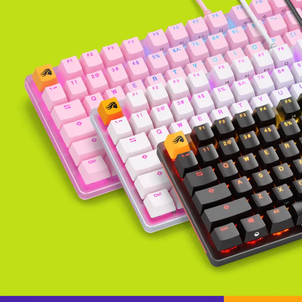 Преобразувайте външния вид на GMMK 2, като смените капачките на клавишите. Персонализирайте звука и усещането при писане чрез смяна на суичовете. Заменете оплетения кабел с цветна намотка като завършек.