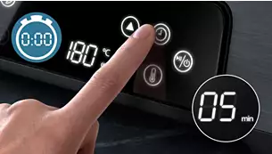 Таймер за прецизно готвене Избягвайте прекомерното изпичане с вграден таймер, който спира нагряването, когато печенето на скара завърши. | ![]() |