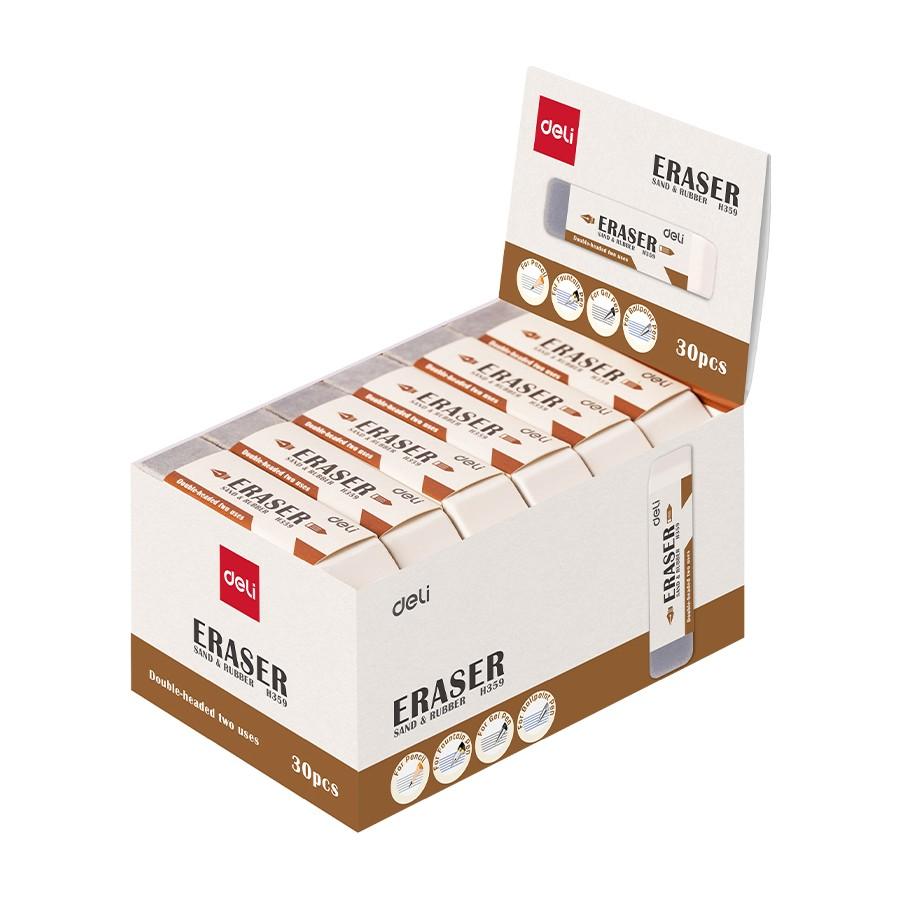 Бялата част изтрива чернографитен молив, а сивата - мастило.