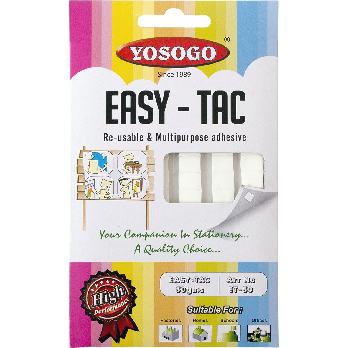 Лепилни подложки за многократна употреба, предназначени да фиксират различни малки предмети върху всякакви повърхности като дърво, мазилка, стъкло, метал,пластмаси, порцелан и пр.