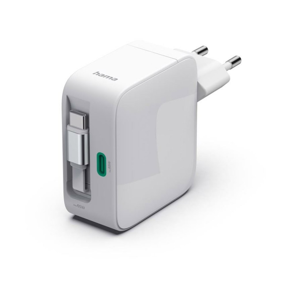 Захранване за двама: Висококачествено USB зарядно устройство с прибиращ се USB-C кабел за зареждане и допълнителен USB-C порт за едновременно зареждане на до две устройства, например смартфон и таблет.