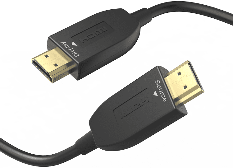 Оптичен активен HDMI кабел за предаване на информация на дълги разстояния. Той съдържа оптични стъклени влакна.Той е по-тънък, лек и по-мек от конвенционалната медна сърцевина при стандартните HDMI кабели,която е по- дебела, тежка и твърда. Кабелът съдържа два чипа, които преобразуват електрическия сигнал в оптичен.