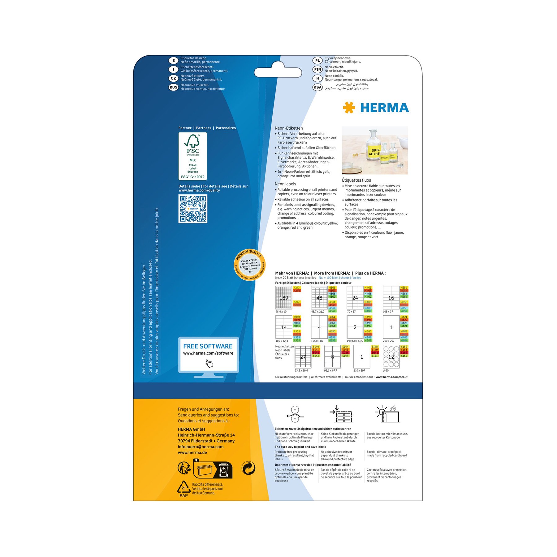 Herma Самозалепващи се етикети, A4.