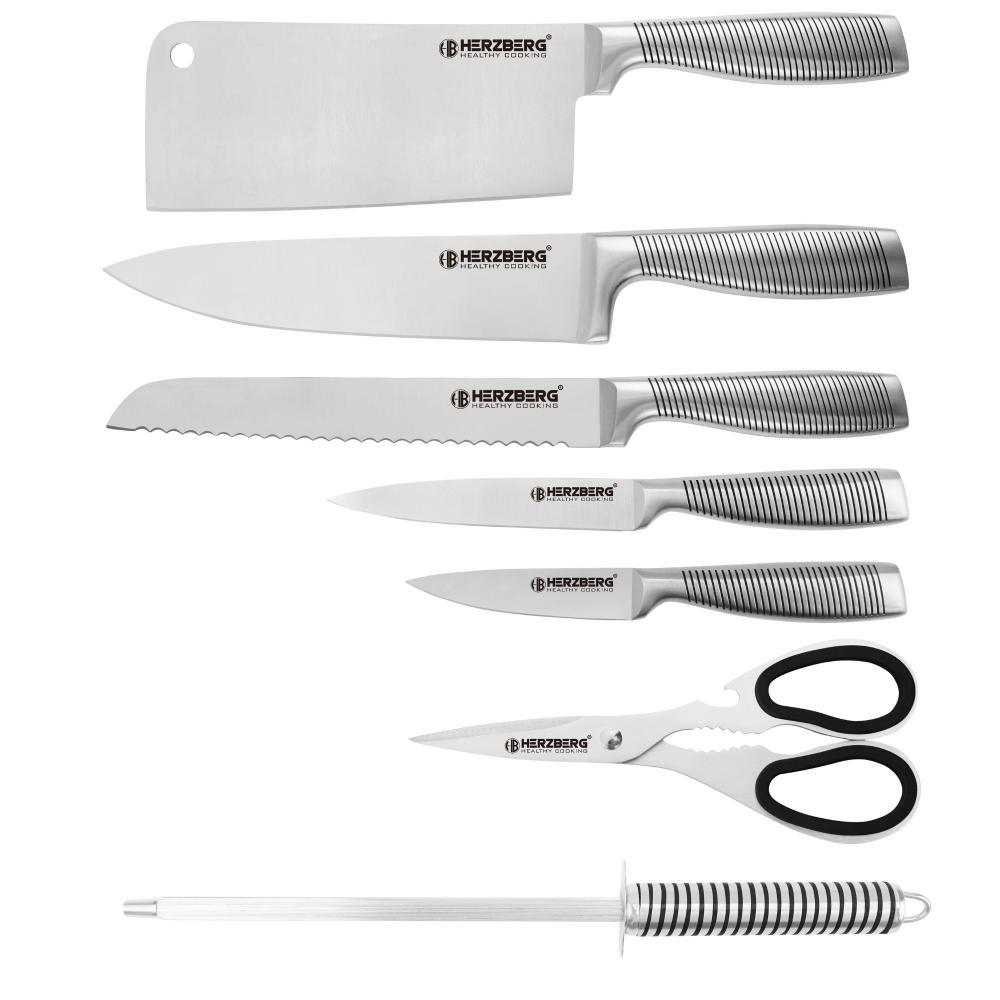 Herzberg 8 Pieces Knife Set + 360° Folding and Swivel Acrylic Stand (HGSKN8YEL) (HEZHGSKN8YEL)