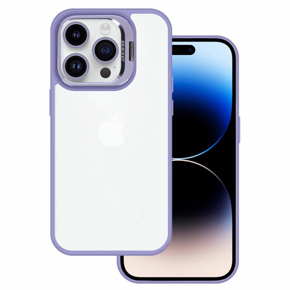 Хибриден кейс с поставка и стъклени лещи за камерата за iPhone 15 Pro (лилав) - Tel Protect Kickstand Case and Camera Glass Lens