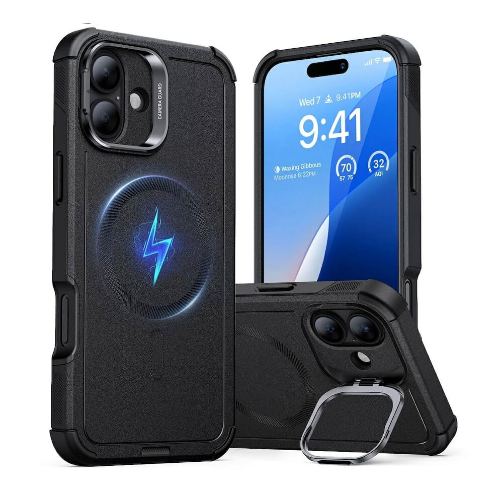 Хибриден кейс с висока степен на защита с MagSafe за iPhone 16 (черен)  - ESR Cyber Armor HaloLock MagSafe Case