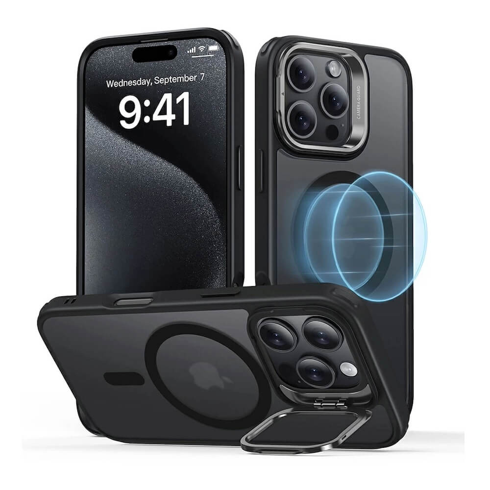 Хибриден кейс с висока степен на защита с MagSafe за iPhone 16 Pro (черен-мат) - ESR Classic Kickstand HaloLock MagSafe Case
