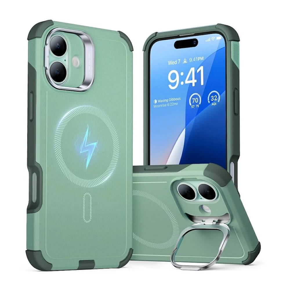 Хибриден кейс с висока степен на защита с MagSafe за iPhone 16 (зелен) - ESR Cyber Armor HaloLock MagSafe Case