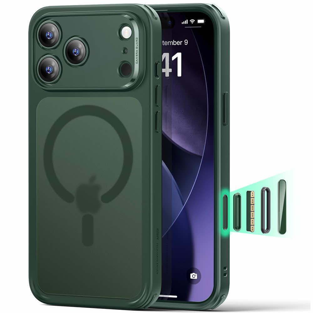 Хибриден кейс с висока степен на защита с MagSafe за iPhone 17 Pro - ESR Classic Hybrid HaloLock MagSafe Case (зелен)