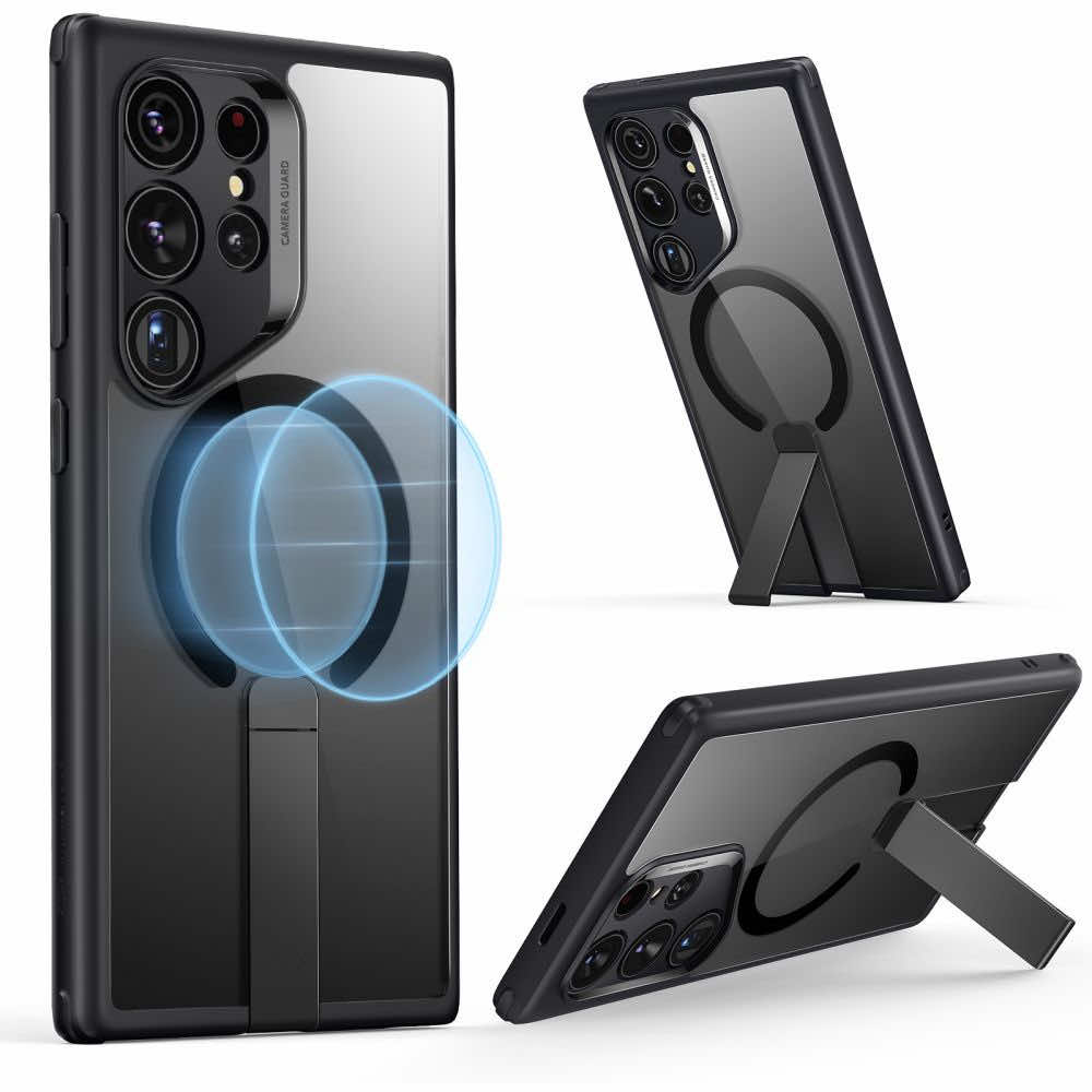 Хибриден кейс с висока степен на защита с MagSafe за Samsung Galaxy S24 Ultra (черен-прозрачен)  - ESR Flickstand Boost HaloLock MagSafe Case