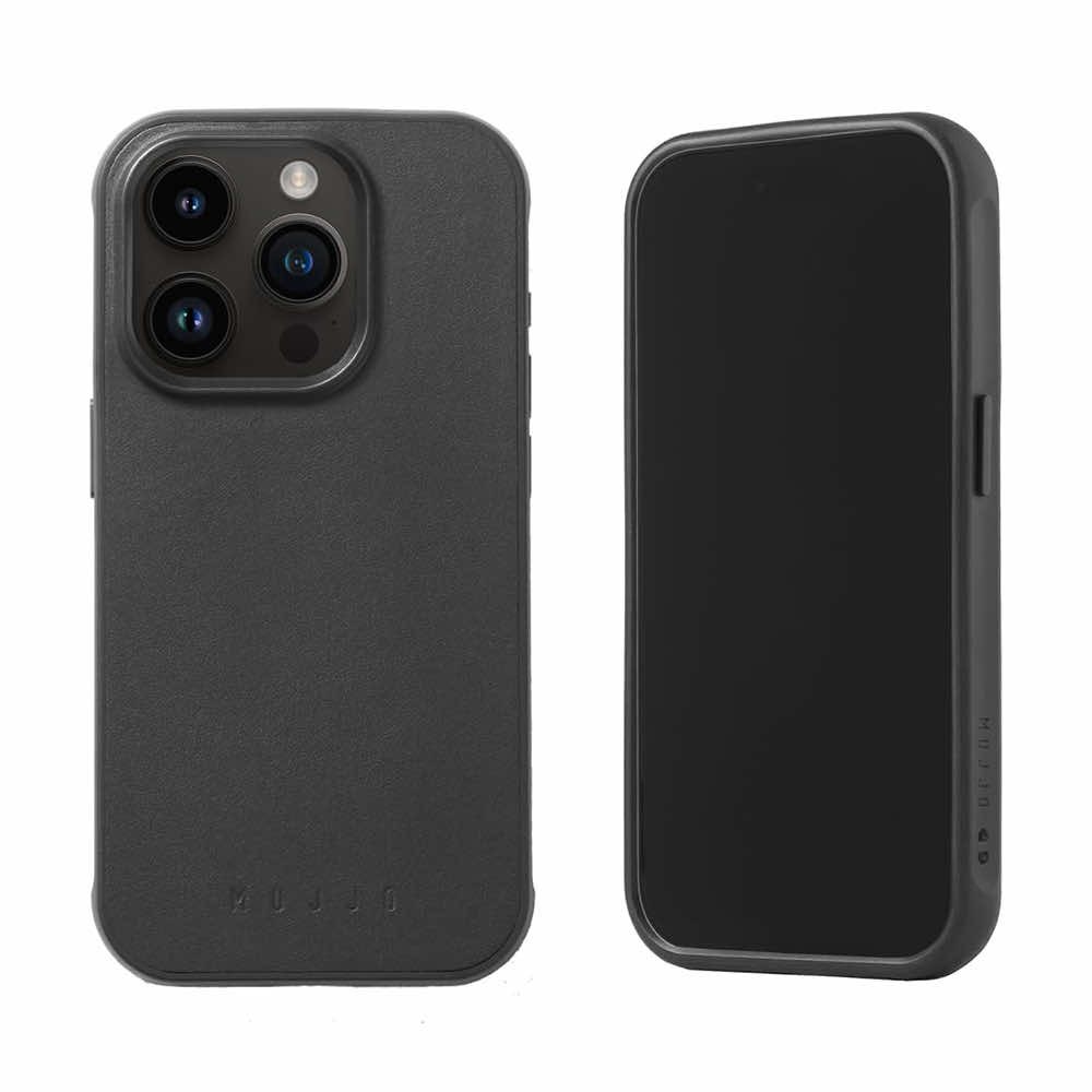 Хибриден удароустойчив кейс от естествена кожа с MagSafe за iPhone 15 Pro - Mujjo Impact Case (черен)