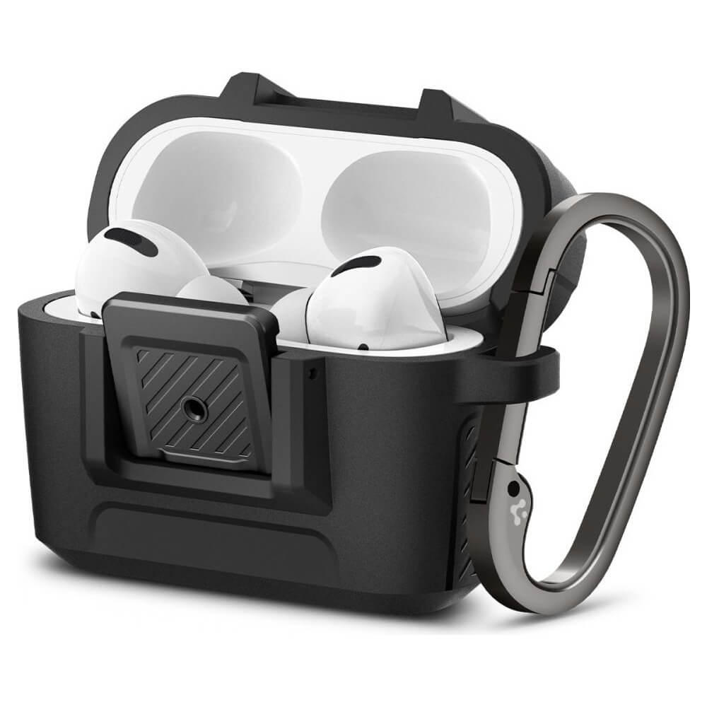 Хибриден удароустойчив кейс с карабинер за Apple AirPods Pro - Spigen AirPods Pro Lock Fit Case (черен)
