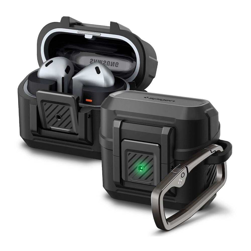 Хибриден удароустойчив кейс с карабинер за Samsung Galaxy Buds 3, Galaxy Buds 3 Pro - Spigen Lock Fit Case (черен)