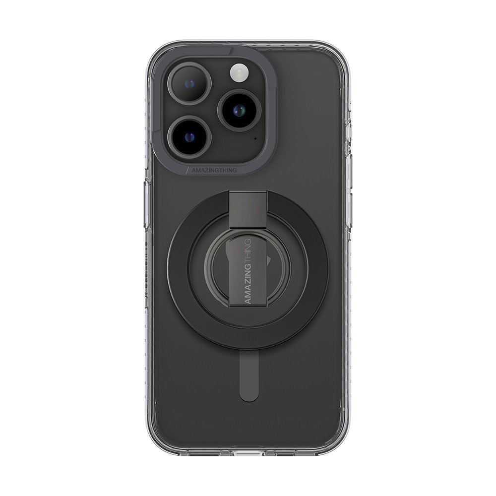 Хибриден удароустойчив кейс с MagSafe и поставка с пръстен против изпускане за iPhone 15 Pro Max - AmazingThing Titan Pro Mag Ring Grip Case (черен)