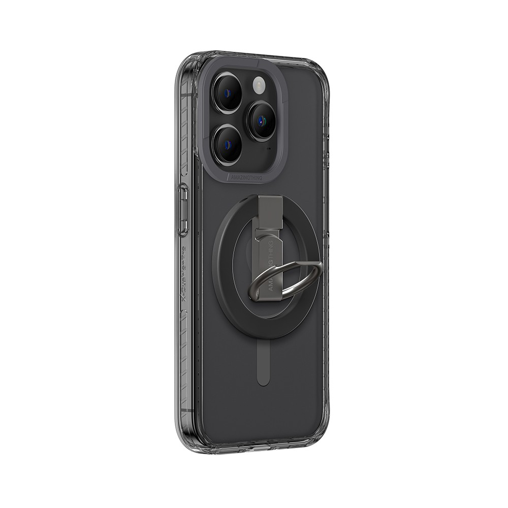 Хибриден удароустойчив кейс с MagSafe и поставка с пръстен против изпускане за iPhone 15 Pro - AmazingThing Titan Pro Mag Ring Grip Case (черен)