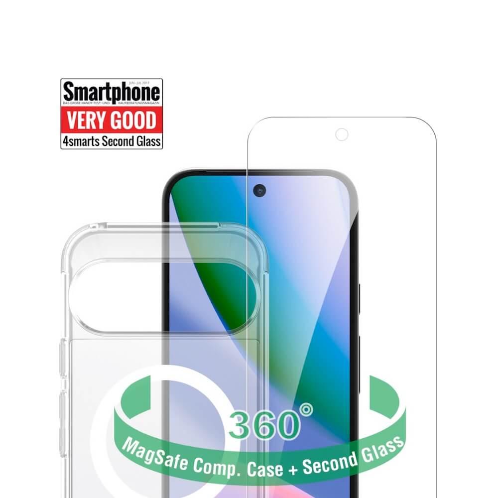 Хибриден удароустойчив кейс с MagSafe и стъклено защитно покритие за дисплея на Google Pixel 10 Pro - 4smarts 360° Premium Protection Set (прозрачен)