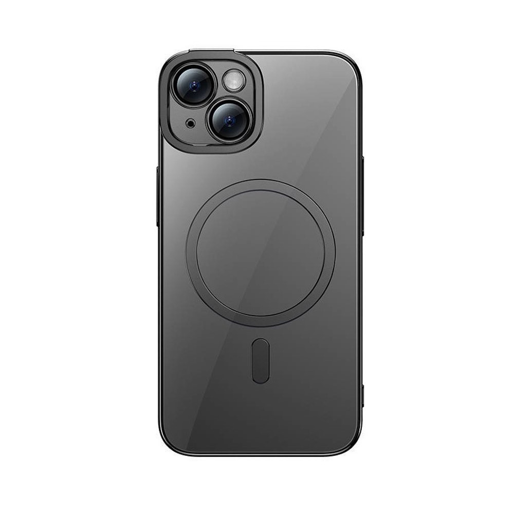 Хибриден удароустойчив кейс с MagSafe и стъклено защитно покритие за дисплея на iPhone 14 - Baseus Glitter MagSafe Hybrid Protection Set (черен-прозрачен)