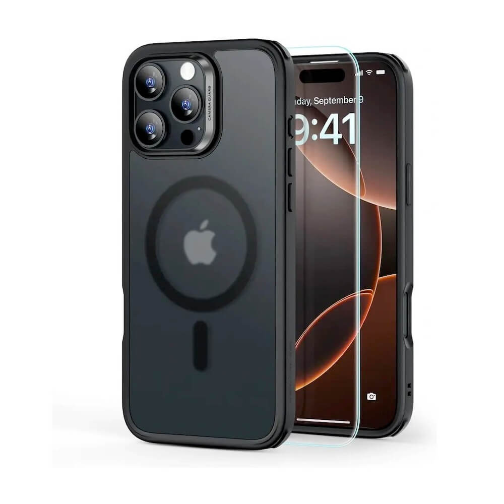 Хибриден удароустойчив кейс с MagSafe и стъклено защитно покритие за дисплея на iPhone 16 Pro - ESR Halolock Classic Hybrid MagSafe Protection Set (черен-мат)