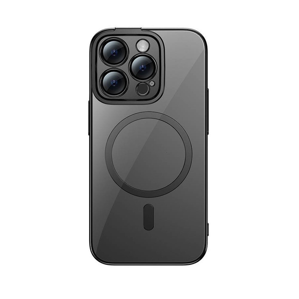 Хибриден удароустойчив кейс с MagSafe и стъклено защитно покритие за дисплея на iPhone 14 Pro - Baseus Glitter MagSafe Hybrid Protection Set (черен-прозрачен)