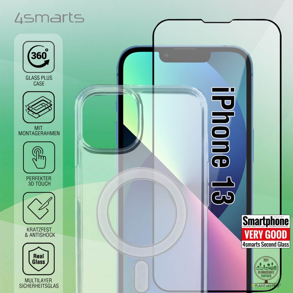 В комплекта: - 1 х 4smarts Full Cover Tempered Glass Protector - 1 х 4smarts MagSafe хибриден кейс - 1 x микрофибърна кърпичка - 1 х мокра кърпичка - 1 х антистатична лепенка за премахване на прашинки - 1 х рамка за поставяне на протектора