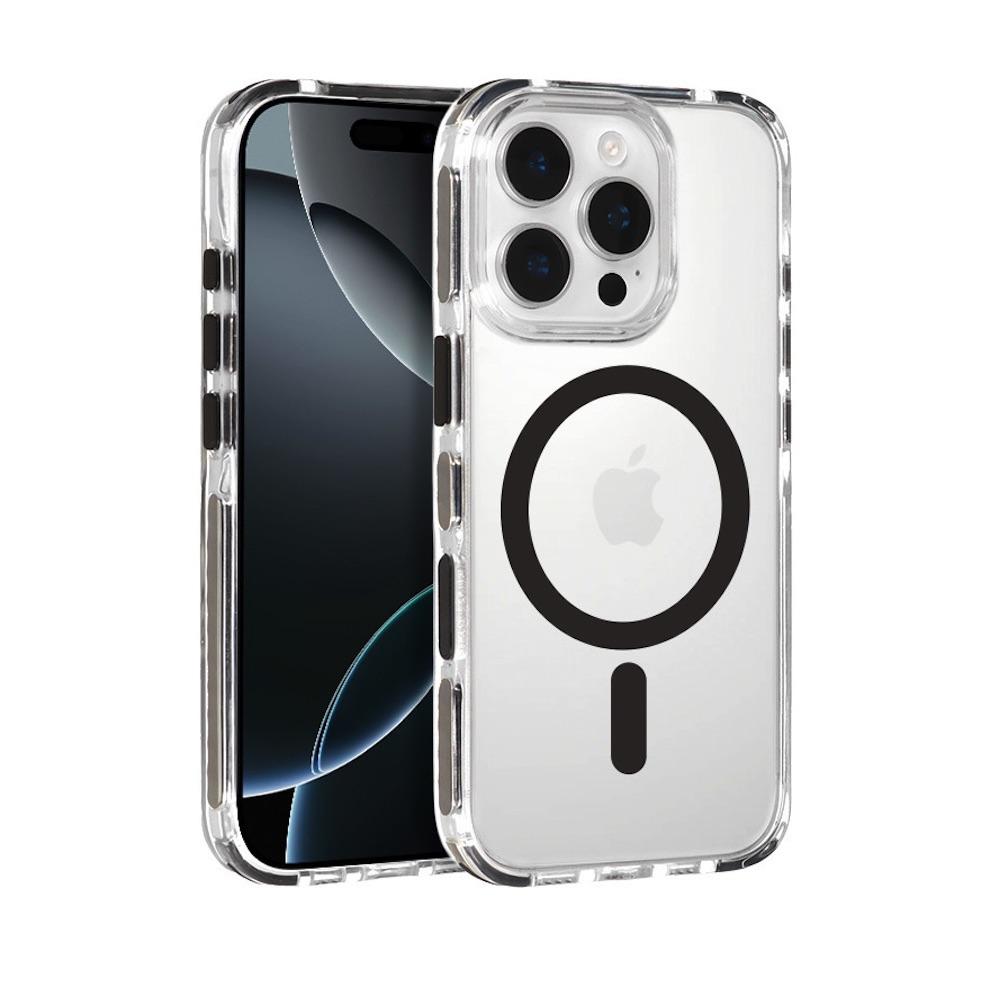 Хибриден удароустойчив кейс с MagSafe и връзка за носене през врата за iPhone 16 Pro  - Tel Protect Stap Clear Magnetic Case MagSafe (черен-прозрачен)