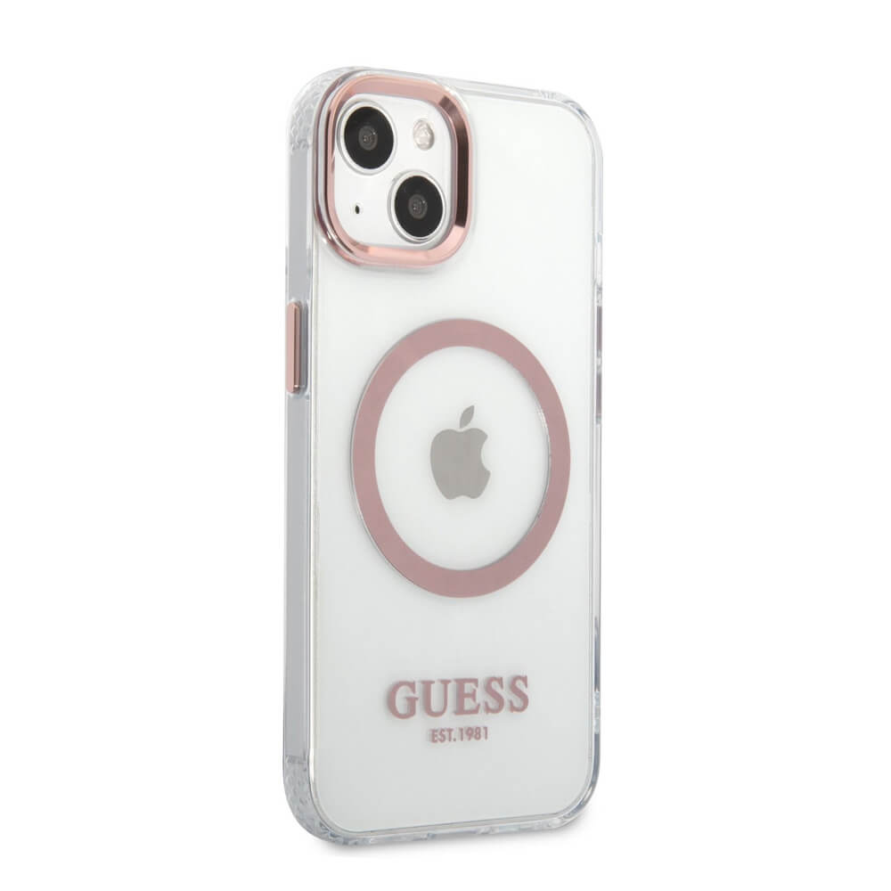 Хибриден удароустойчив кейс с MagSafe за iPhone 13 - Guess Translucent MagSafe Case (прозрачен-розов)