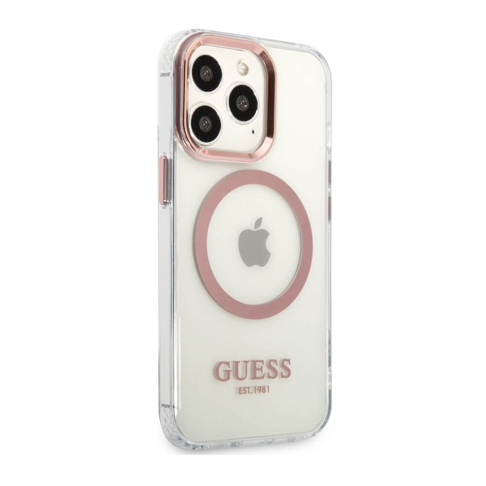 Хибриден удароустойчив кейс с MagSafe за iPhone 13 Pro - Guess Translucent MagSafe Case (прозрачен-розов)