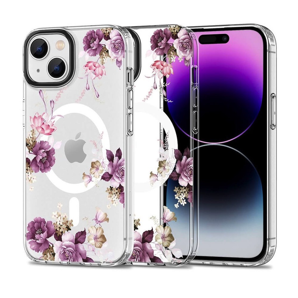 Хибриден удароустойчив кейс с MagSafe за iPhone 15 - Tech-Protect MagMood Spring Floral Hybrid MagSafe Case (цветни мотиви)
