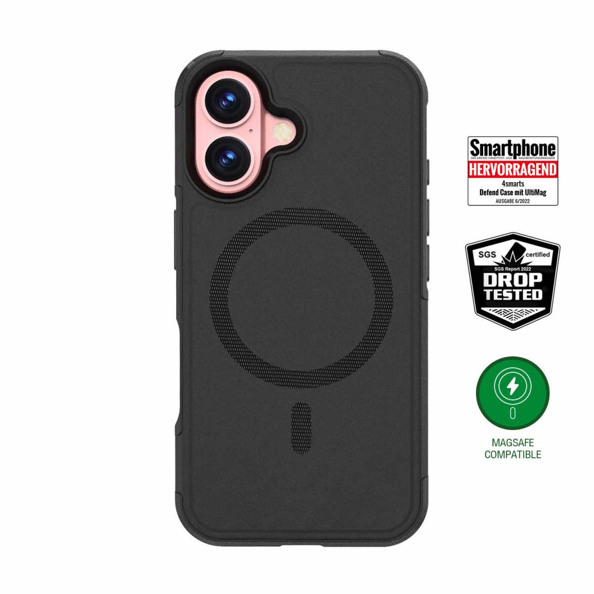 Хибриден удароустойчив кейс с MagSafe за iPhone 16 - 4smarts Defend MagSafe Case (черен)