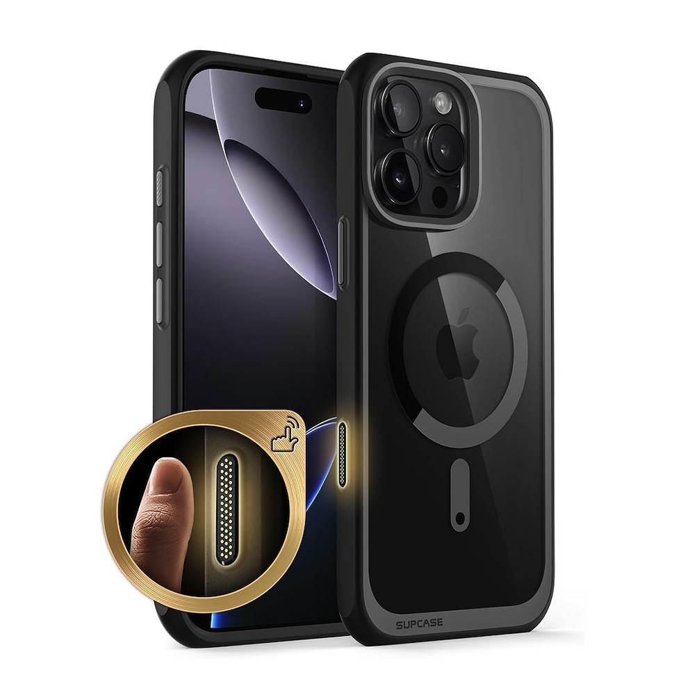 Хибриден удароустойчив кейс с MagSafe за iPhone 16 Pro - i-Blason SUPCASE Unicorn Beetle Slim MagSafe Case (черен-прозрачен)