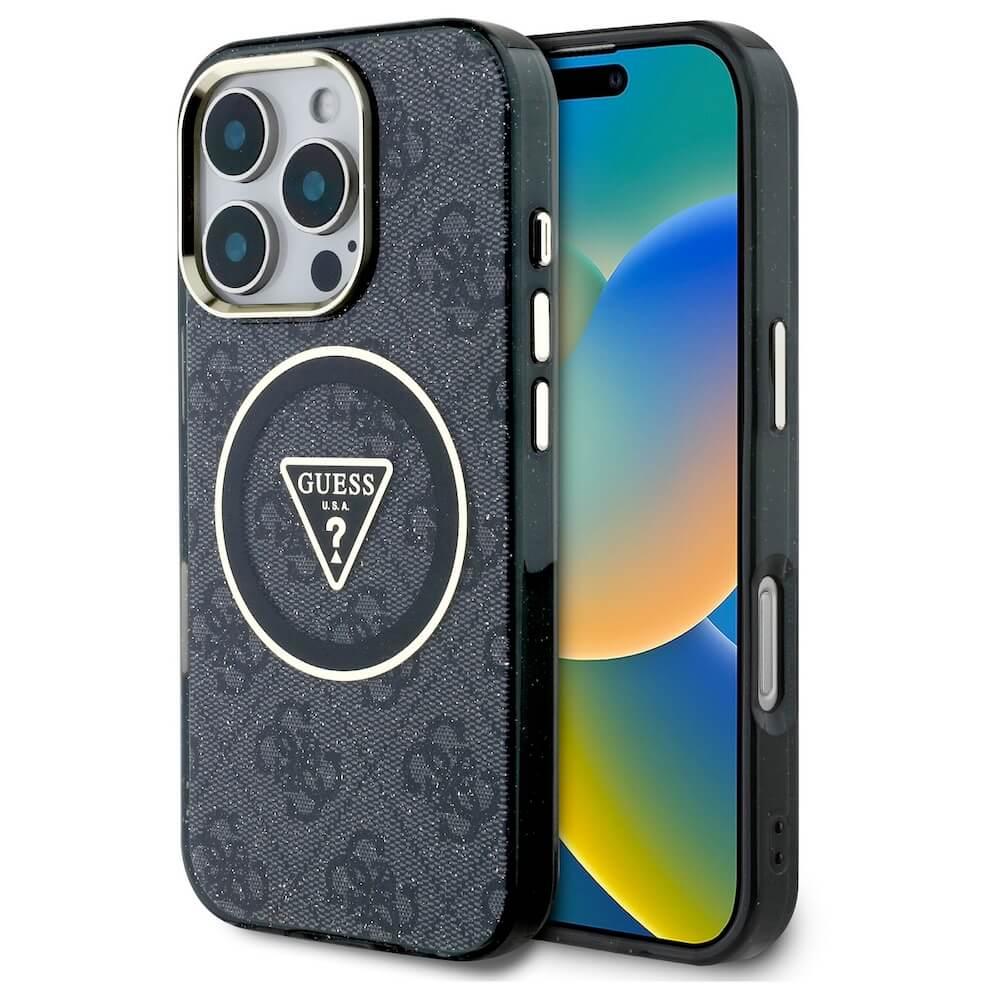 Хибриден удароустойчив кейс с MagSafe за iPhone 16 Pro Max - Guess IML Rhinestones Ring MagSafe Case (черен)