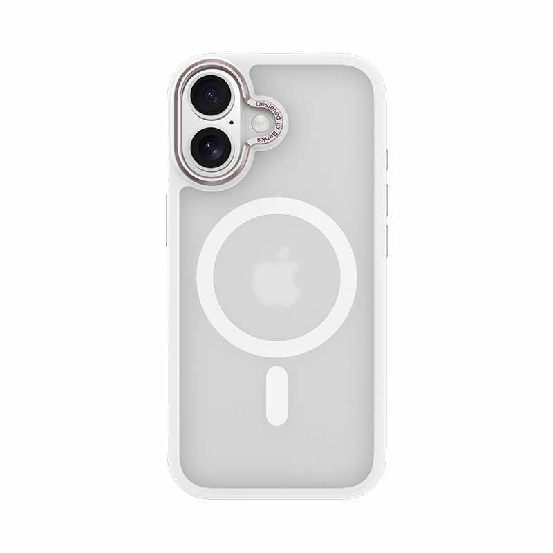 Хибриден удароустойчив кейс с MagSafe за iPhone 17 - Benks Magnetic Mist Metal Frame Case (бял)