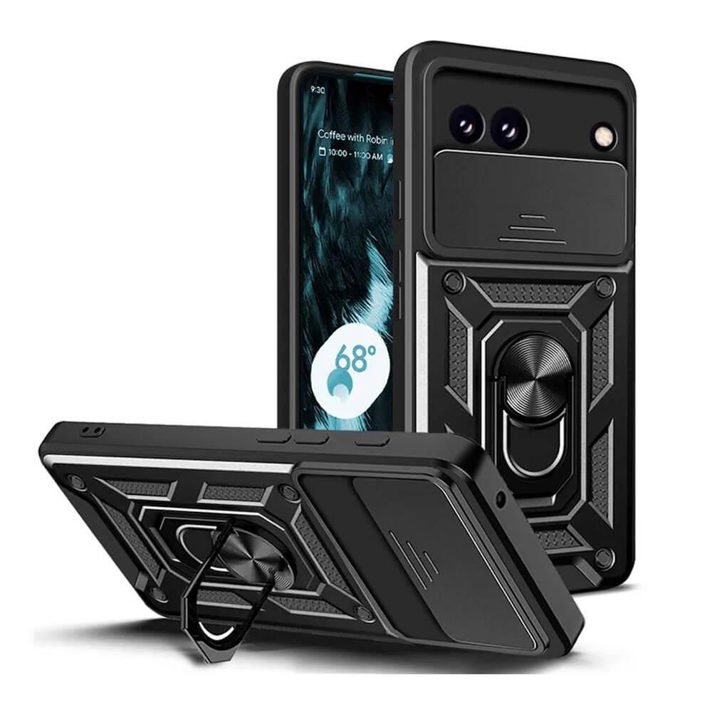 Хибриден удароустойчив кейс с пръстен против изпускане за Google Pixel 8a (черен)  - Techsuit CamShield Case
