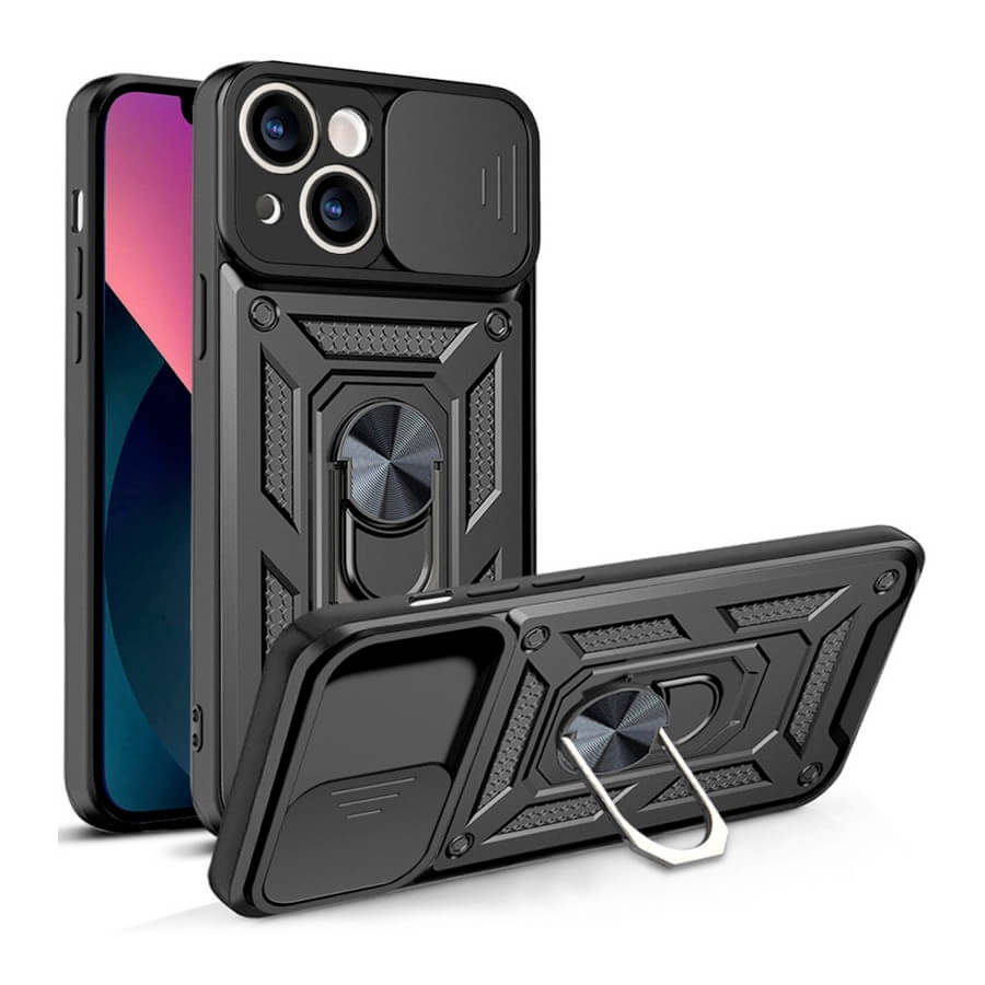 Хибриден удароустойчив кейс с пръстен против изпускане за iPhone 13 (черен)  - Techsuit CamShield Case