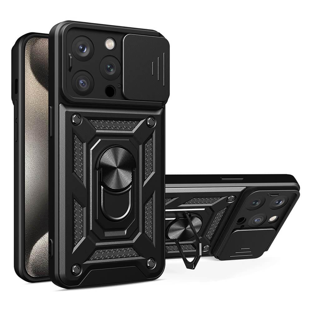 Хибриден удароустойчив кейс с пръстен против изпускане за iPhone 15 Pro Max (черен)  - Techsuit CamShield Case
