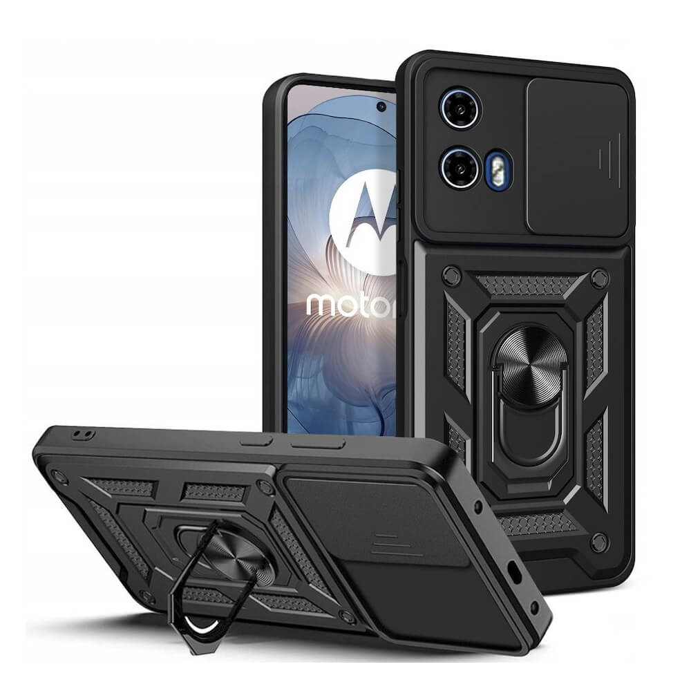 Хибриден удароустойчив кейс с пръстен против изпускане за Motorola Moto G24, Moto G24 Power, Moto G04 - Tech-Protect CamShield Pro Hard Case (черен)
