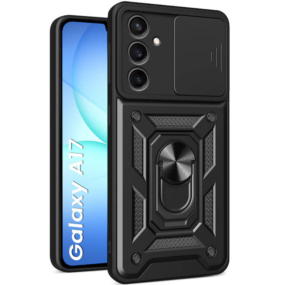 Хибриден удароустойчив кейс с пръстен против изпускане за Samsung Galaxy A17 5G, Galaxy A17 4G - Techsuit CamShield Case (черен)