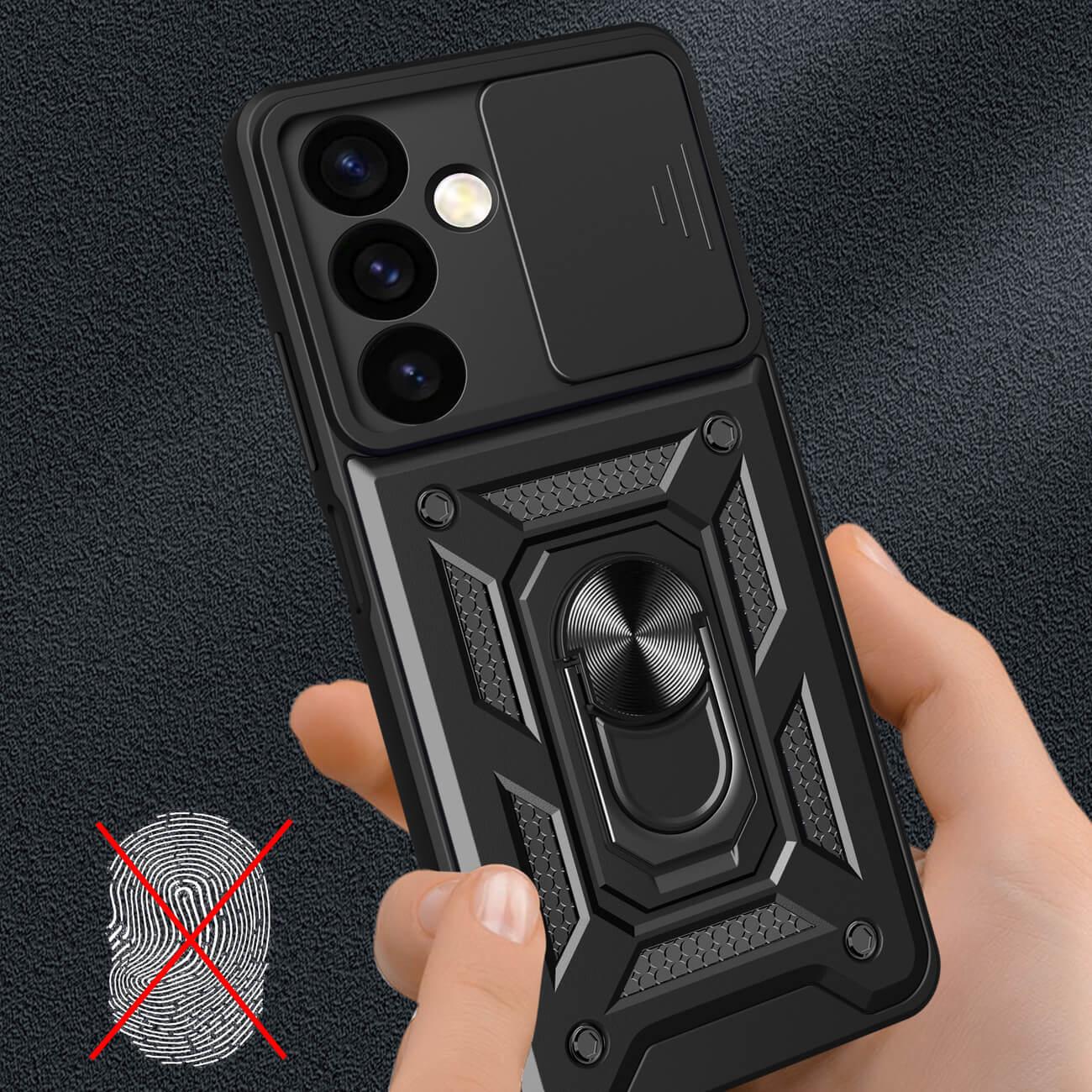 Хибриден удароустойчив кейс с пръстен против изпускане за Samsung Galaxy S24 - Armor Camshield Hybrid Case With Stand (черен)
