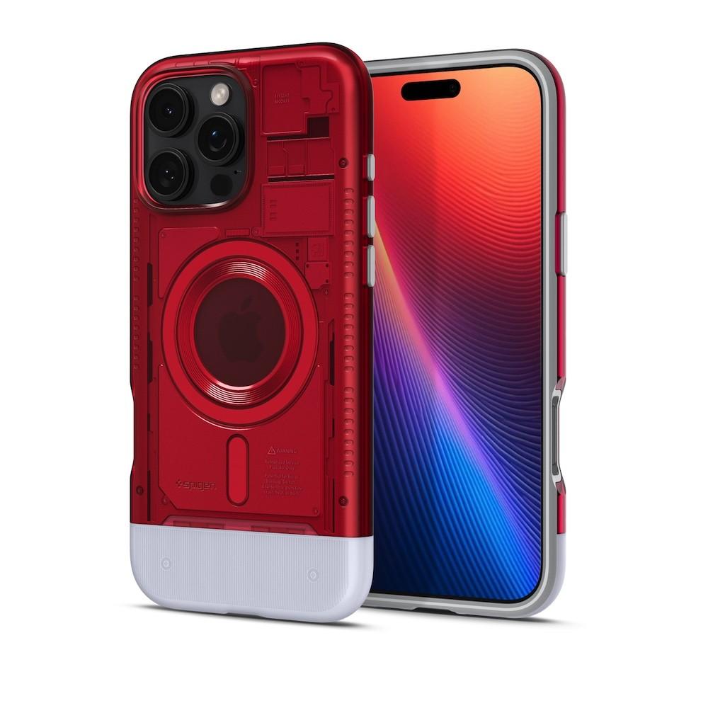 Хибриден удароустойчив кейс с висока степен на защита с MagSafe за iPhone 16 Pro (червен)  - Spigen Classic C1 MagSafe Case