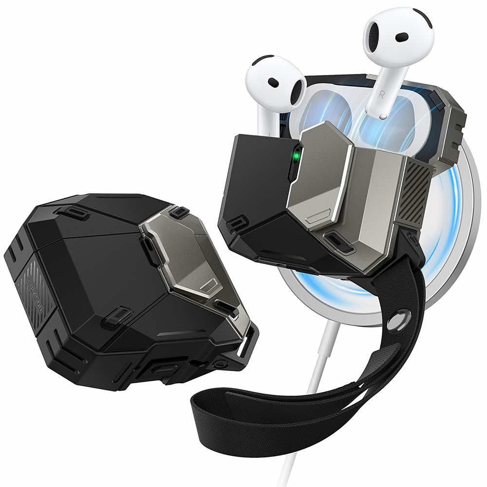 Хибриден удароустойчив кейс с връзка за ръка съвместим с MagSafe за Apple AirPods 4 - i-Blason Matrix Case (черен)