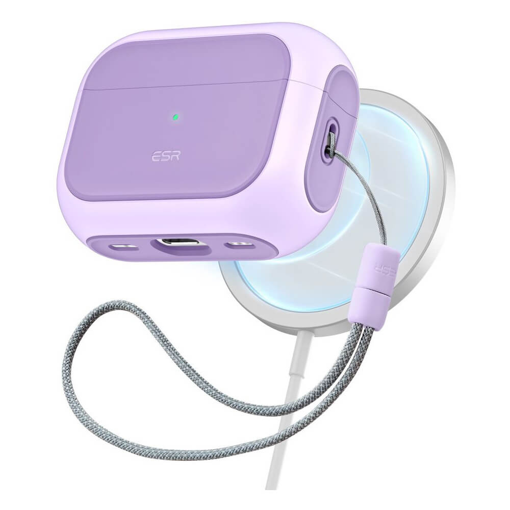 Хибриден удароустойчив кейс с връзка за ръка съвместим с MagSafe за Apple AirPods Pro 2, AirPods Pro - ESR AirPods Pro Orbit Halolock MagSafe Case (лилав)