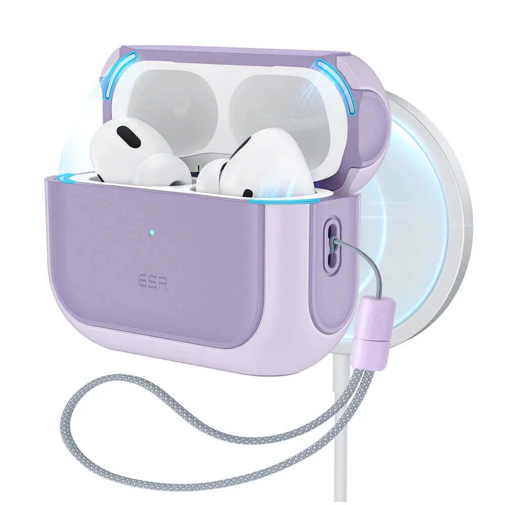 Хибриден удароустойчив кейс с връзка за ръка съвместим с MagSafe за Apple AirPods Pro 3 - ESR Orbit Halolock MagSafe Case (лилав)