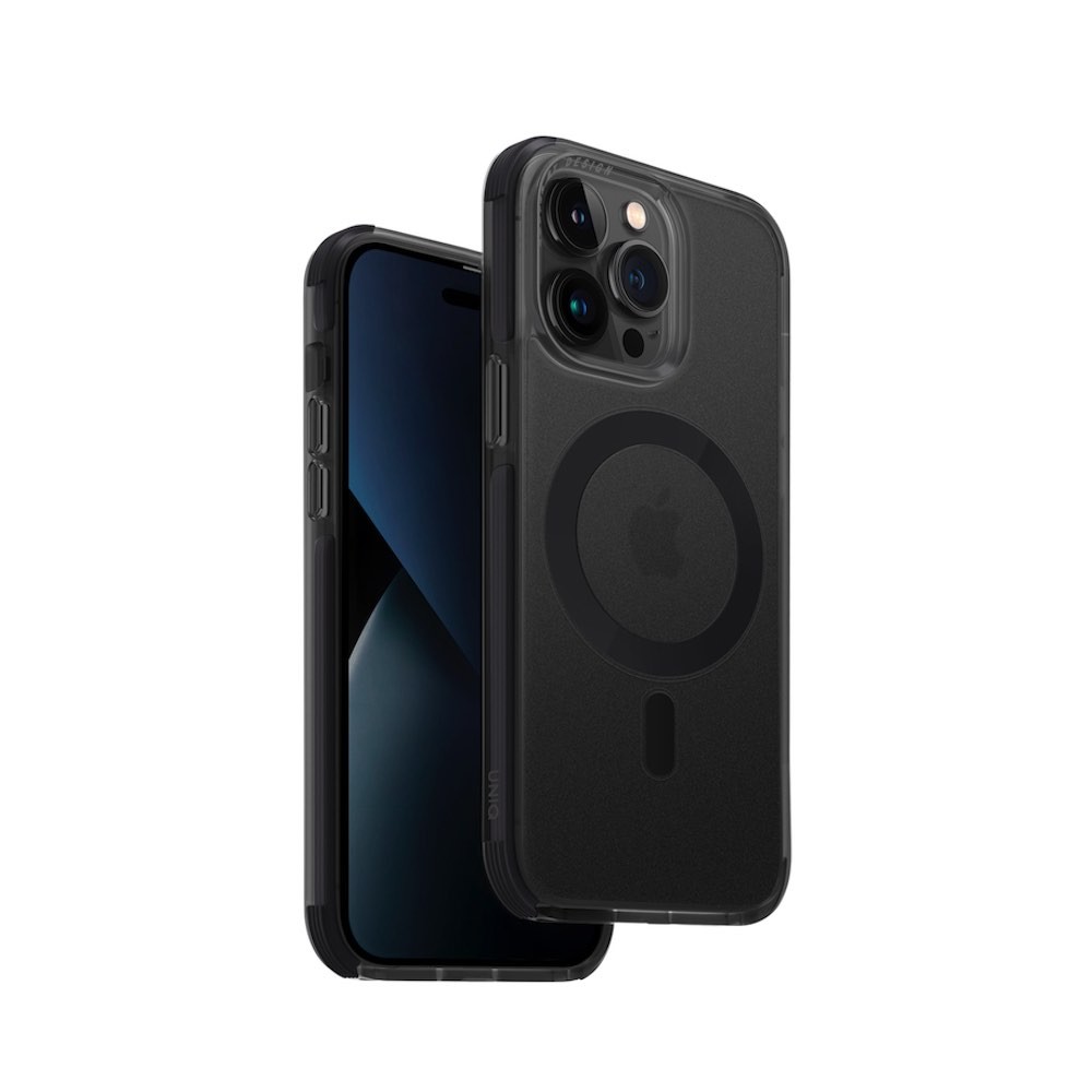 Хибриден удароустойчив кейс за с MagSafe за iPhone 14 Pro - Uniq Combat MagClick Case (черен-прозрачен)