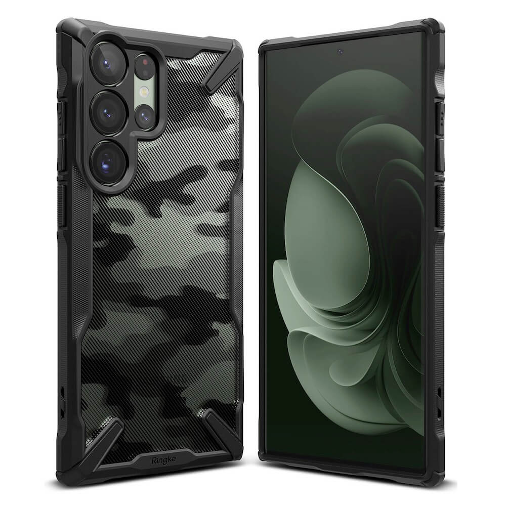 Хибриден удароустойчив кейс за Samsung Galaxy S23 Ultra - Ringke Fusion X Case (черен-камуфлаж)