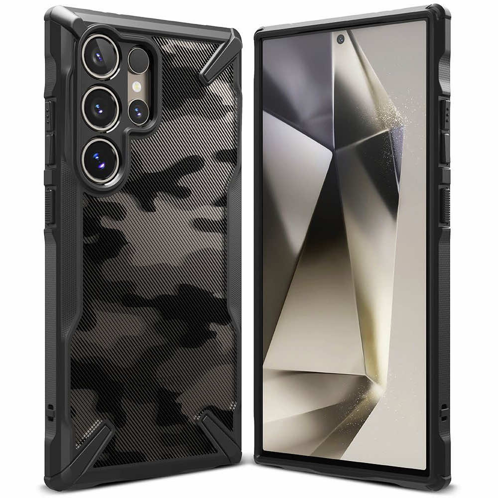 Хибриден удароустойчив кейс за Samsung Galaxy S24 Ultra - Ringke Fusion-X Case (черен-камуфлаж)