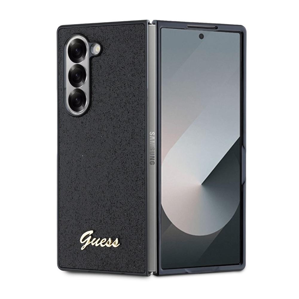 Хибриден удароустойчив кейс за Samsung Galaxy Z Fold6 - Guess Glitter Flakes Metal Logo Case (черен)