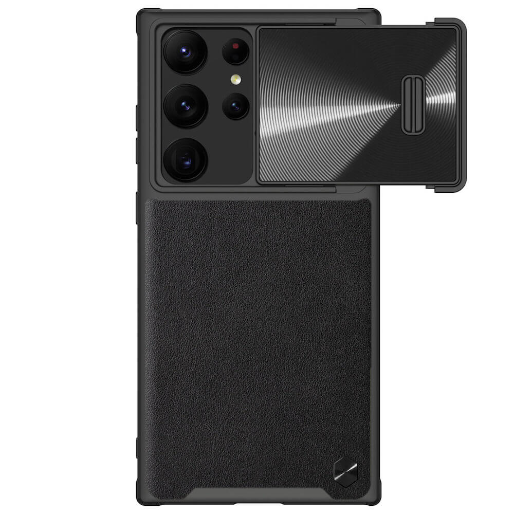 Хибриден удароустойчив кожен кейс за Samsung Galaxy S23 Ultra - Nillkin CamShield Leather S Case (черен)